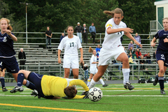 Just two minutes into the second half, Closs converted a pass from Rachel Schlobohm for a 3-0 cushion and New Providence proceeded to choke off any offensive flow that Oak Knoll may have carried over from the first 40 minutes. New Providence outshot Oak Knoll, 7-1, over the next 30 minutes and padded its lead as well in the 56th when Closs slipped a rainbow over keeper Alex Feltes (seven saves).