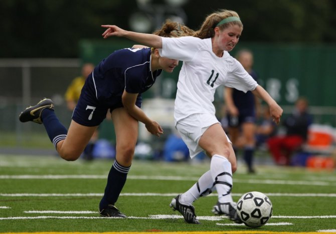 Just seconds after Oak Knoll’ Anne Flanagan foiled a one-on-one chance by Gina Caprara, Farrell one-timed a loose ball following a well-placed corner kick by Caprara in the 15th minute for a 1-0 New Providence lead. In the 33rd minute, Closs got going when Farrell drove through midfield and connected on a right-to-left pass and Closs drilled a beautiful left-footed shot from 20 yards out.