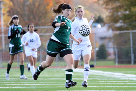 New Providence tied the match four minutes into the second half on a perfectly placed high ball from 25 yards away by senior stopper Caitlin Sneeden, a stellar performer at both ends of the field throughout the Pioneer campaign. Ten minutes later, Closs put the visiting side ahead, 2-1, via a signature drive-by from the left wing and a shot into the upper right corner.