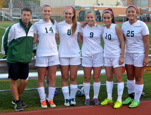 Head coach Scott Murphy with seniors Jillian Perini, Paige Kovacs, Erin Fay, Lisa Caprara and Sarah Barquero.